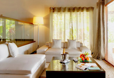 30 номерів Beach Villa (96 кв. М, просторі індивідуальні вілли на березі з обробкою з натурального дерева і каменю. Ванна кімната з ванною і душем на відкритому повітрі. В номері є винний шафа, кавоварка, праска з дошкою для прасування)