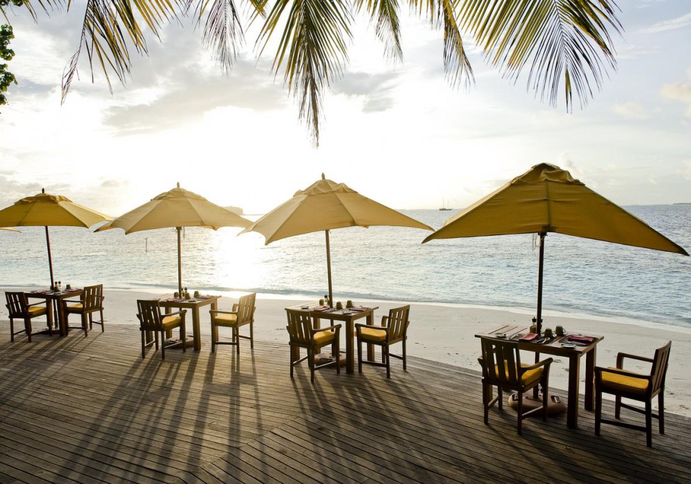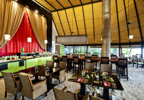 ресторан Riveli (азіатська, середземноморська і мальдівська кухні в стилі ф'южн), бар The Velaavani Bar з видом на океан.