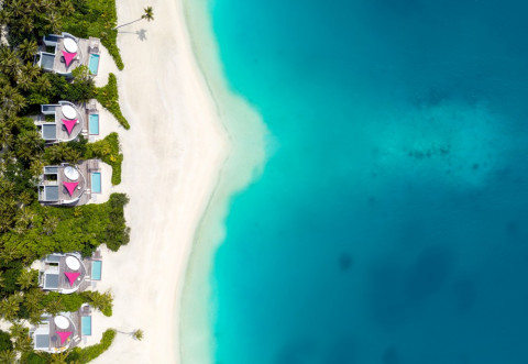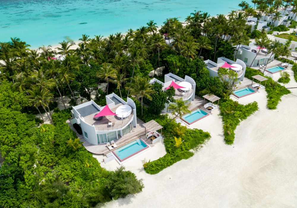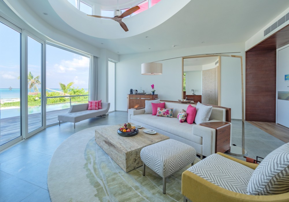 15 номерів Beach Villa (110 кв.м (всередині приміщення) / 351 кв.м (загальна площа), берегові вілли з однією спальнею, вітальнею і приватним басейном)