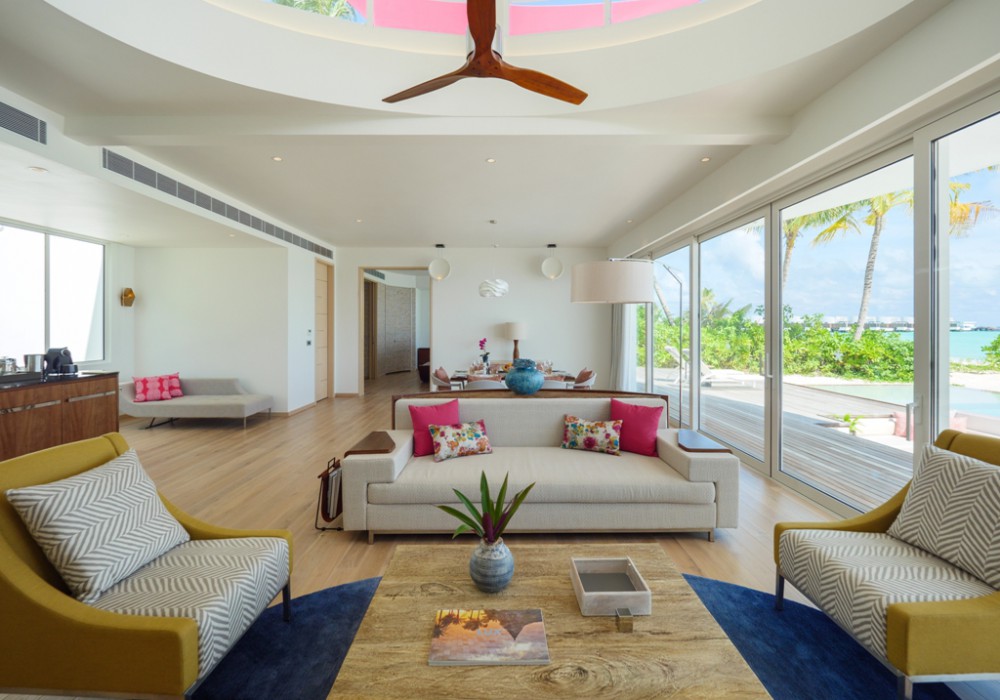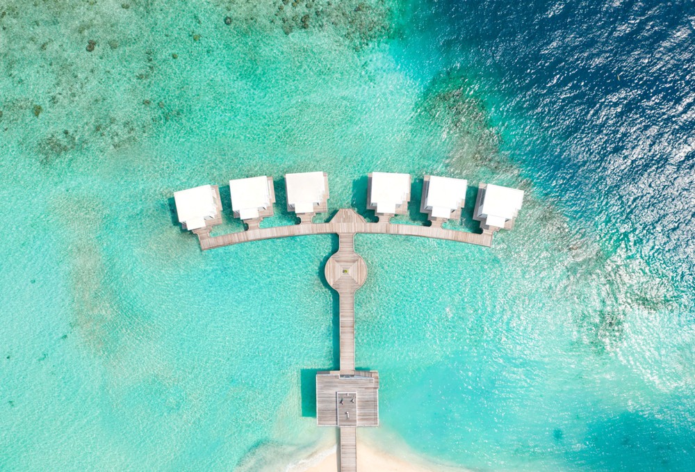 4 номера 2 Bedrooms Over Water Residence (205 кв.м (всередині приміщення) / 680 кв.м (загальна площа), вілли на воді з прямим спуском у воду, з двома спальнями, вітальнею і приватним басейном)