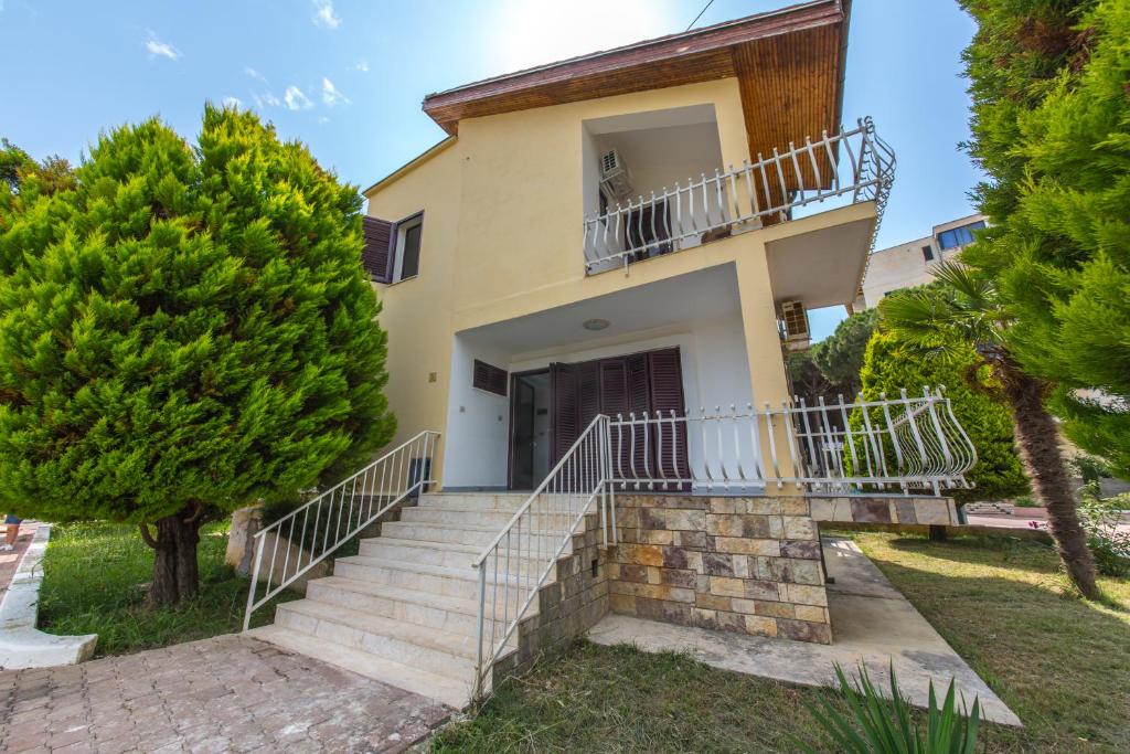 У віллі 2 + 1 (1-й поверх, 2-й поверх близько 150 кв.м): одна спальня з двоспальним ліжком і полуторним, тумбочками та шафою, ванна кімната з умивальником, туалетом, душем; друга спальня з одним двоспальним ліжком, шафою, тумбочками; вітальня з обладнаною кухнею, кондиціонером, холодильником, диваном, обіднім столом; з вітальні йде вихід на балкон; ванна кімната з умивальником, туалетом, душем.
