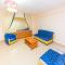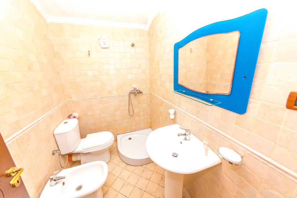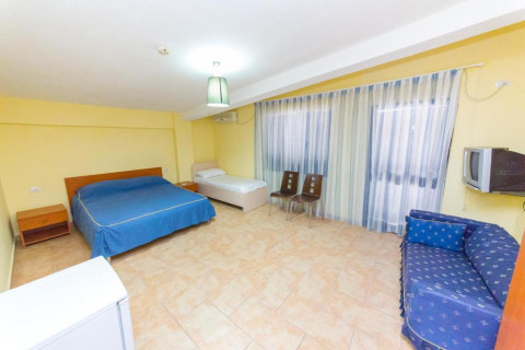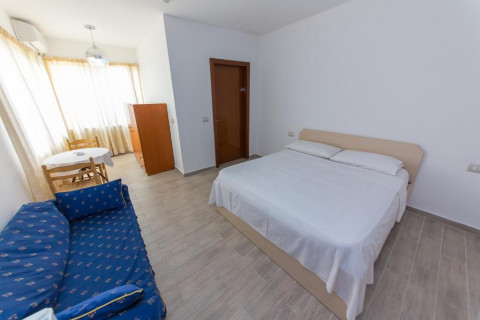 Apartments 2 + 1 (близько 90 м²) - одна спальня з двоспальним ліжком, тумбочками та шафою, ванна кімната з умивальником і туалетом; друга спальня з одним односпальним ліжком і однієї двоярусною, шафою; вітальня з обладнаною кухнею, телевізором, кондиціонером, диваном, холодильником, 2-я кріслами і обіднім столом; з вітальні йде вихід на балкон; ванна кімната з умивальником, туалетом, біде, душем.