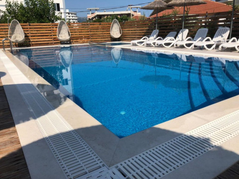У готелю є власний пляж, розташований в 400 метрах від будівлі. Також на території є відкритий басейн. Користування парасольками та шезлонгами на пляжі і у басейну входить у вартість проживання в готелі (один комплект на номер), пляжні рушники не надаються.