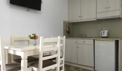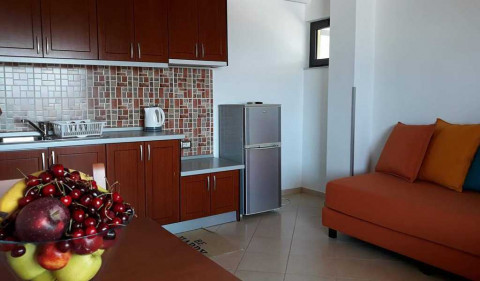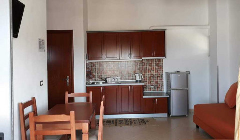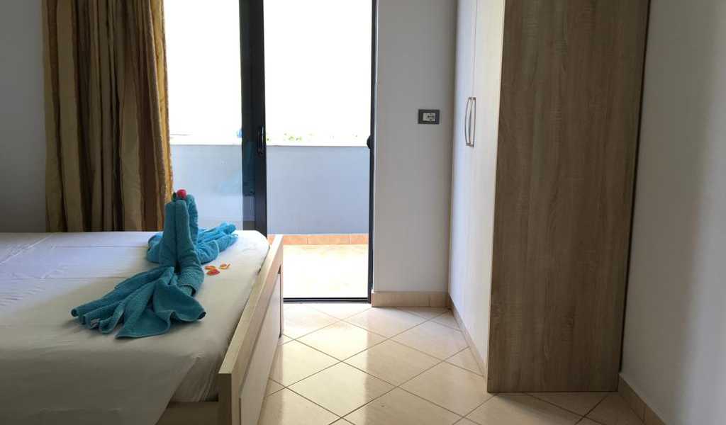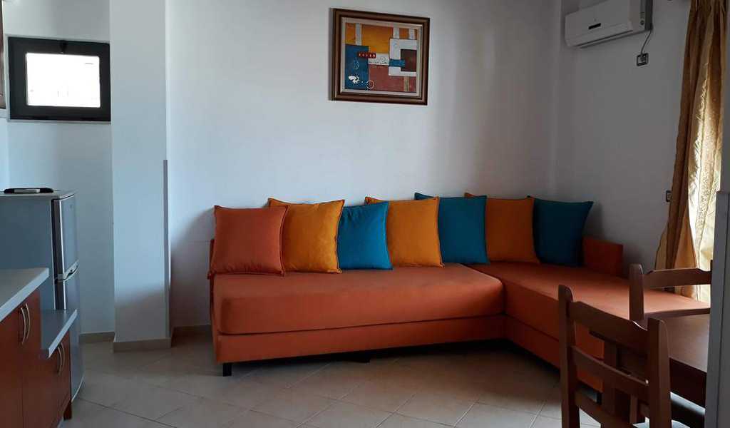 Apartament 1 + 1, близько 55 м², 2 кімнати: кухня-вітальня і спальня з 1 двоспальним ліжком. У вітальні є 2 диван-ліжка. 3 апартаменти мають балкон (один з них з видом на море), 3 інші - без балкона.