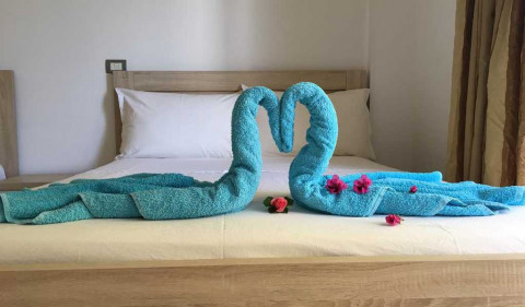 Standard Room, близько 30 м², номер з балконом, 1 двоспальним ліжком і 1 односпальне ліжко. В цьому році в номерах міні-кухні немає. 2 номери мають вигляд на море, інші 6 номерів - немає.
