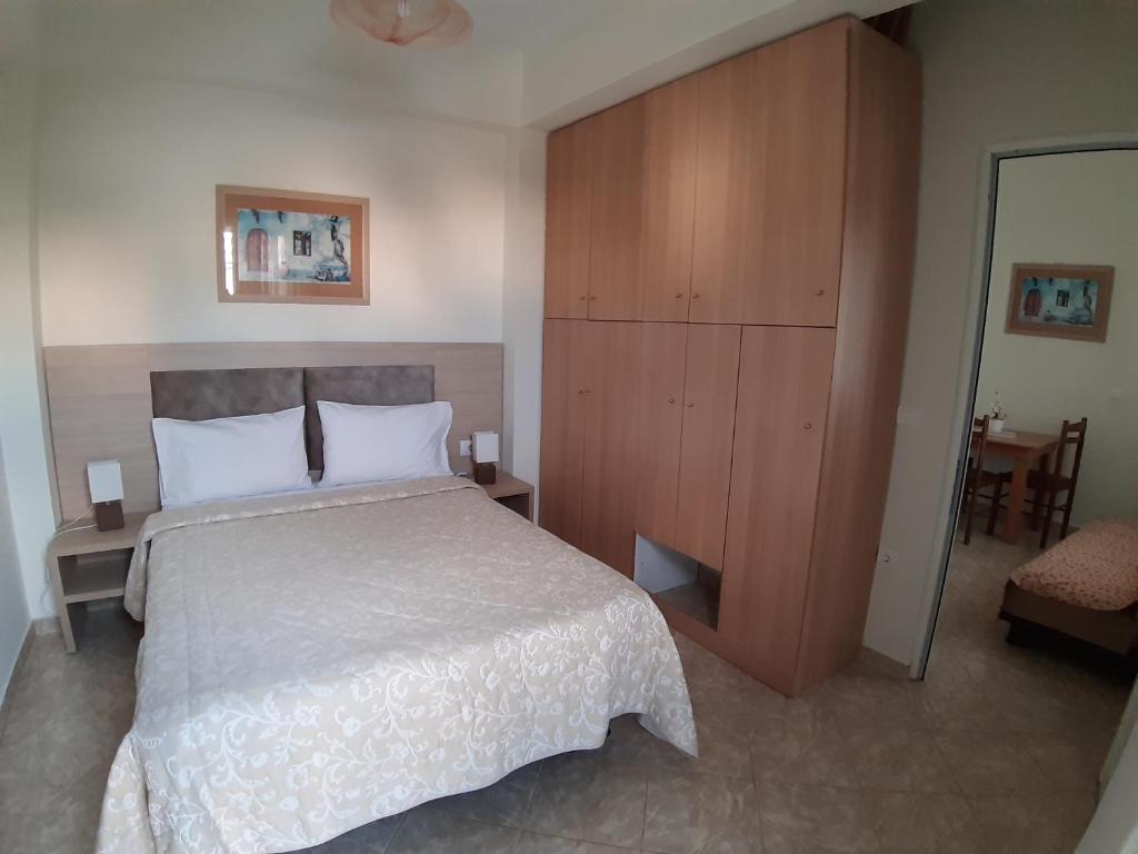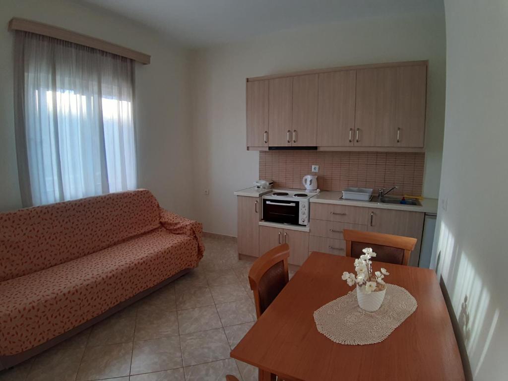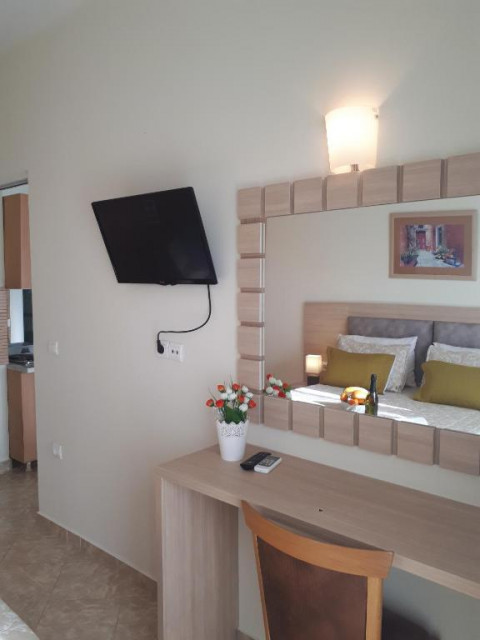 APARTMENT Partial Sea View, близько 40 м², двокімнатний апартамент з частковим видом на море, поділений на спальню з одним двоспальним ліжком і кухню-вітальню з диваном, який може бути використаний як спальне місце для одного дорослого. Всього в готелі 3 апартаменти. Максимальне розміщення - 3 дорослих + 1 дитина до 3-х років.