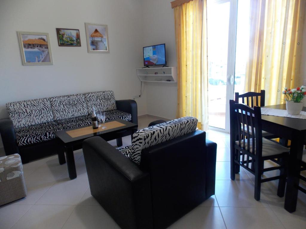 Користування пляжем не входить у вартість проживання в апартаментах. Парасольки і шезлонги надаються на пляжах Саранди за додаткову плату.