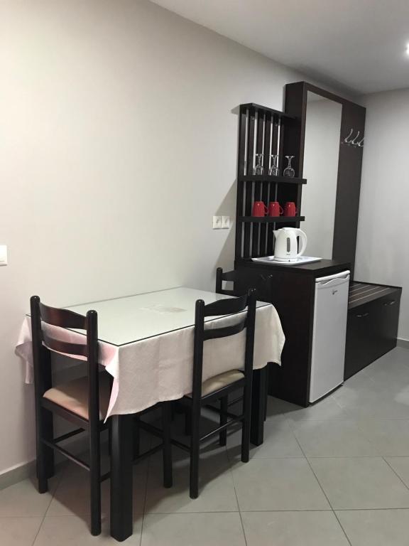 Будівля готелю складається з 3-х поверхів без ліфта. Всього в готелі 11 номерів з прямим або бічним видом на море (SV / SSV). У всіх номерах є балкон, кондиціонер, телевізор (національні албанські канали), міні-холодильник, шафа, стіл, стільці, дзеркало, приліжкові тумби, ванна кімната (душові приналежності, душова кабіна, фен, рушники). У номерах немає можливості поставити додаткове ліжко. У 6 номерах з 11 є обладнана кухня.