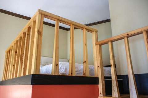 У номерах: двоспальне ліжко, шафа, холодильник,