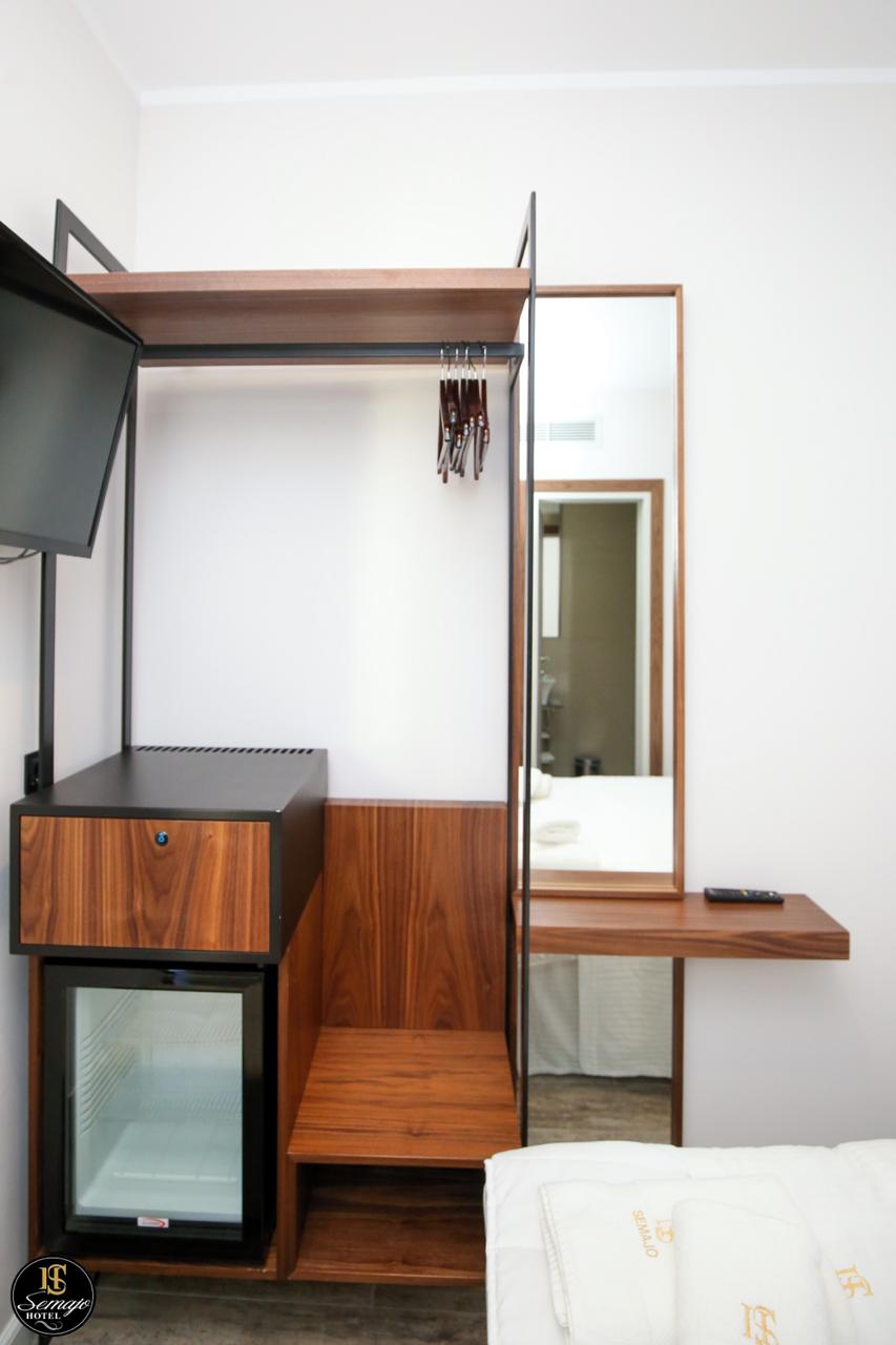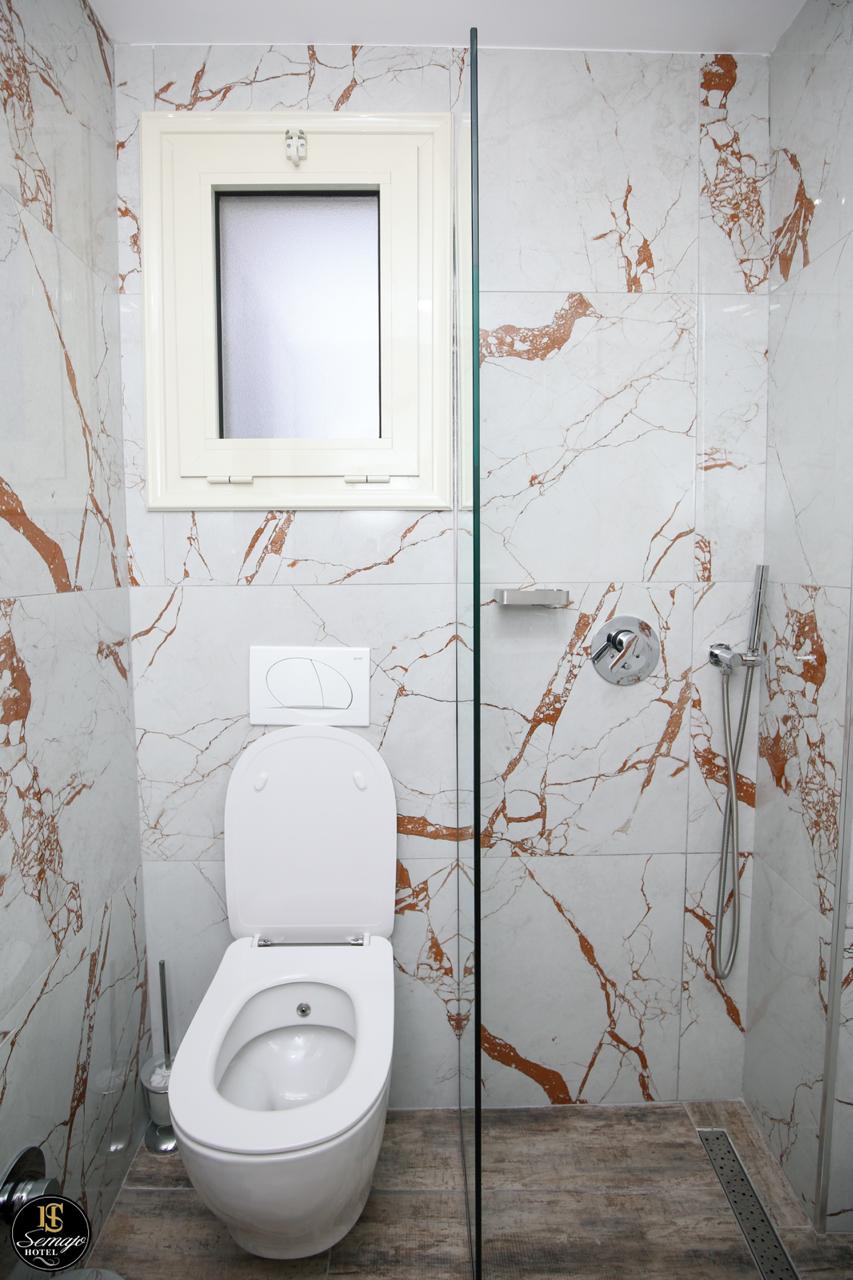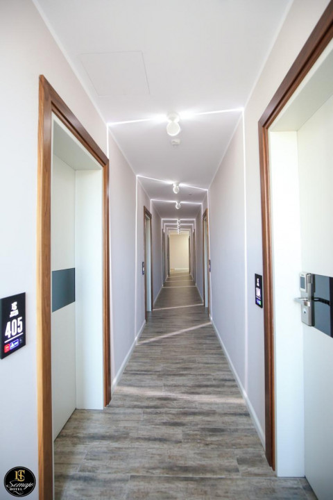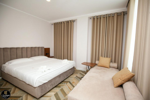 SUITE, близько 35 м², однокімнатний сьют з гідромасажною ванною, великим двоспальним ліжком і вітальні зоною з диваном, який можна використовувати як спальне місце для 1 дорослого. Максимальне розміщення - 3 дорослих та 1 дитина до 4х років (спить з дорослими). Всього 1 номер в готелі.