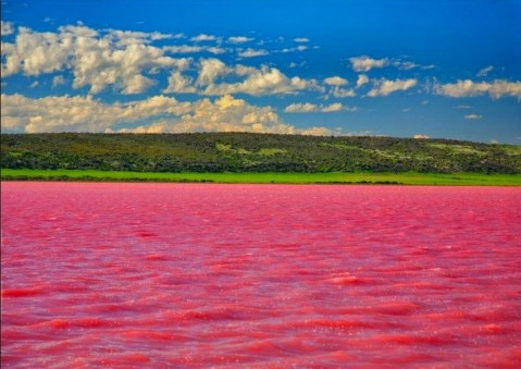 -Інше твердження говорить про те, що рожевий відтінок утворюється внаслідок поєднання солей, що містяться в водах озера, і специфічних мікроорганізмів.