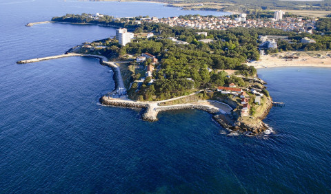 Бургаський затока є найбільшим на болгарському узбережжі Чорного моря. Широкий 41 км з чорним піском через високий вміст заліза, марганцю і магнію. Єдиний населений острів на болгарському чорноморському узбережжі - Св. Анастасія. Острів виник через виверження вулкана, і в результаті штормів і морських хвиль з'явилися дивні скельні утворення - Гриб, Дракон, Окаменевший піратський корабель, Ворота Сонця. Ділянка землі, розташований в 6,5 км (4 морських миль) на південний схід від Бургаса, розташований між мисом Чукалов і мисом Атія.