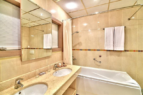 STUDIO EXECUTIVE - Розташування: 9-й і 8-й поверхи, всі з видом на море або басейн. Кількість ліжок: 2 ліжка 100 / 200см., 1 розкладний 2-х місцевий диван; кондиціонер, ванна кімната з ванною і душ кабіною або тільки великою ванною, окремий туалет; халати і тапочки; повне кухонне обладнання з приладдям; балкон з лежаками і столом, макс.2в. + 2р., 3в .;