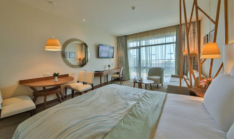 У центрі курорту, в 150 м від спеціального пляжу для гостей готелю. В готелі Фламінго Гранд Готель & Спа є 260 номери-студіо стандарт і студіо люкс на 9-му поверсі.