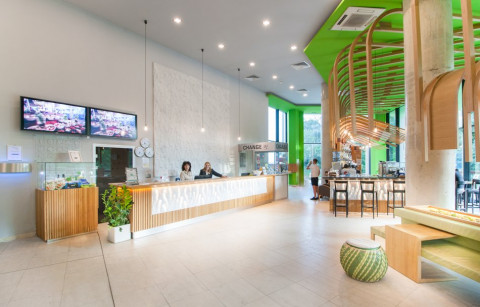 На пляжі, поряд з ліановим лісом "Балтата", 318 номерів. / Двомісні номери з видом на парк і море; апартаменти з 1 і 2-ма спальнями з видом на море, мезонети /