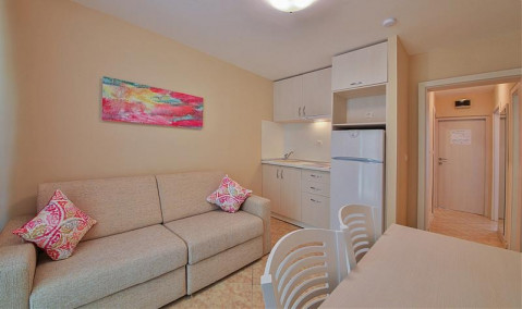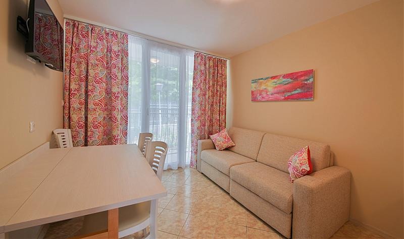 Вілла - вони сучасно мебльовані з двома спальнями, одна з двоспальним ліжком 160х200 см, а інша з двома односпальними ліжками 90х200 см і вітальні з раскл.діваном і холодильником з камерою, керамічної плитою з аспіратор, мікрохвильовою піччю, чайником для гарячої води. Вони мають окремі ванні кімнати з душем, феном та туалетом, а також три балкона з видом на парк.макс.4в. + 1р., 4в .; 45м2.