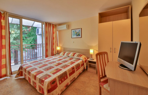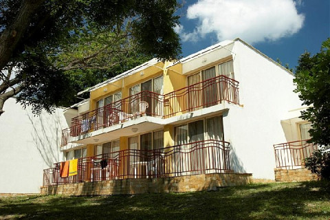 У парковій зоні, в 700 м від пляжу і центру курорту Албена; 1200 м від Аква парк "Aqua Mania". 84 вілл / 69 вілл з 2-ма спальнями і кухнею, 15 вілл з 2-ма спальнями і вітальнею /.