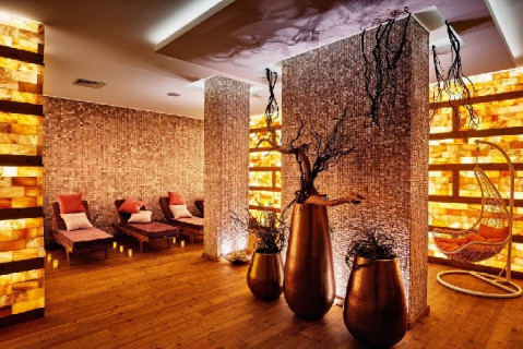 СПА-центрс більш ніж 28 атракціонами: сауна / безкоштовно /, парова лазня / безкоштовно /, контрастний душ / безкоштовно /, соляна кімната / безкоштовно /, зона відпочинку / безкоштовно /, крижана кімната / безкоштовно /, солярій / платно / масаж / платно /, манікюрний і педікюрний кабінет / платно /, масаж рибками Гарра руфа / платно /, терапія лікувальною гряззю або водоростями / платно / і т.д