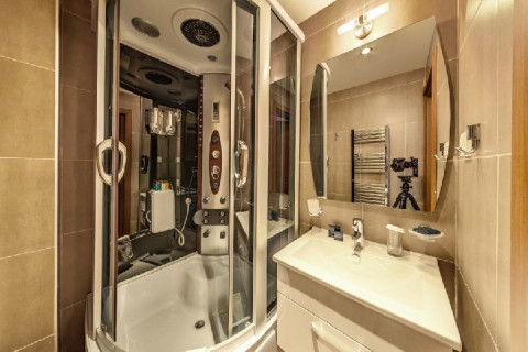 JUNIOR SUITE: 2 односпальні ліжка або 1 двоспальне ліжко; кухонним куточком з обладнанням / електрична плита без духовки, ел. чайник/; 1 ванна кімната з душем; макс. 2в; 24-35 м2;