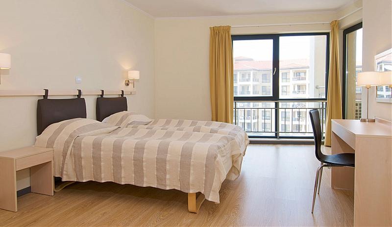 1BEDROOM APARTMENT: 2 приміщення: вітальня з диваном і кухонним куточком, спальня з двома односпальними ліжками, 1 ванна кімната з душем, макс. 3в. + 1р., 4в., 60м2;