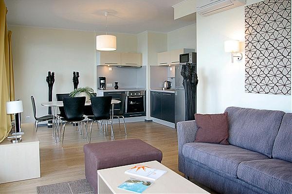 2 BEDROOM APARTMENT: 3 приміщення: вітальня з диваном і кухонним куточком, 2 спальні, кожна з двома односпальними ліжками, 1 ванна кімната з душем, макс. 5в. + 1р., 6в., 80м2;