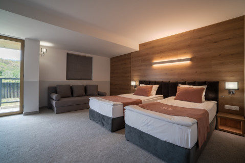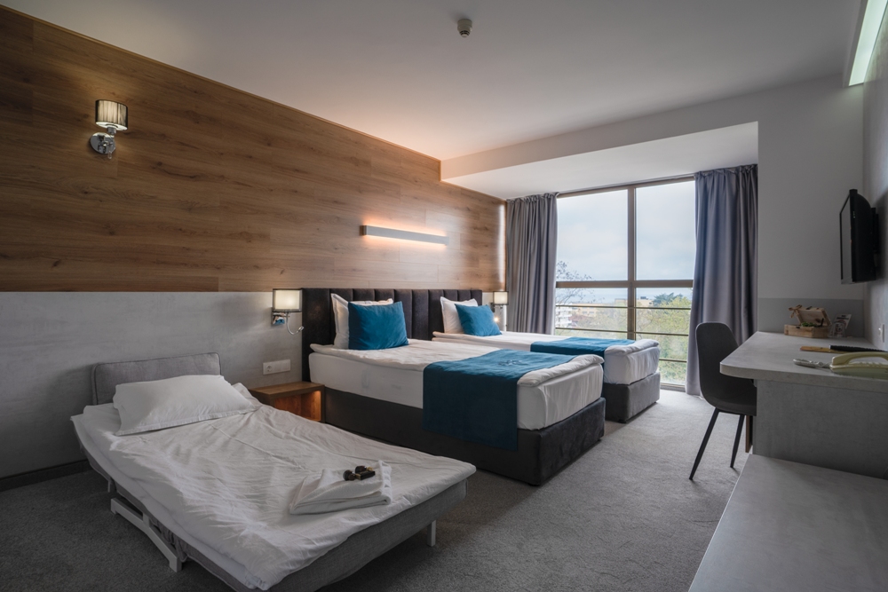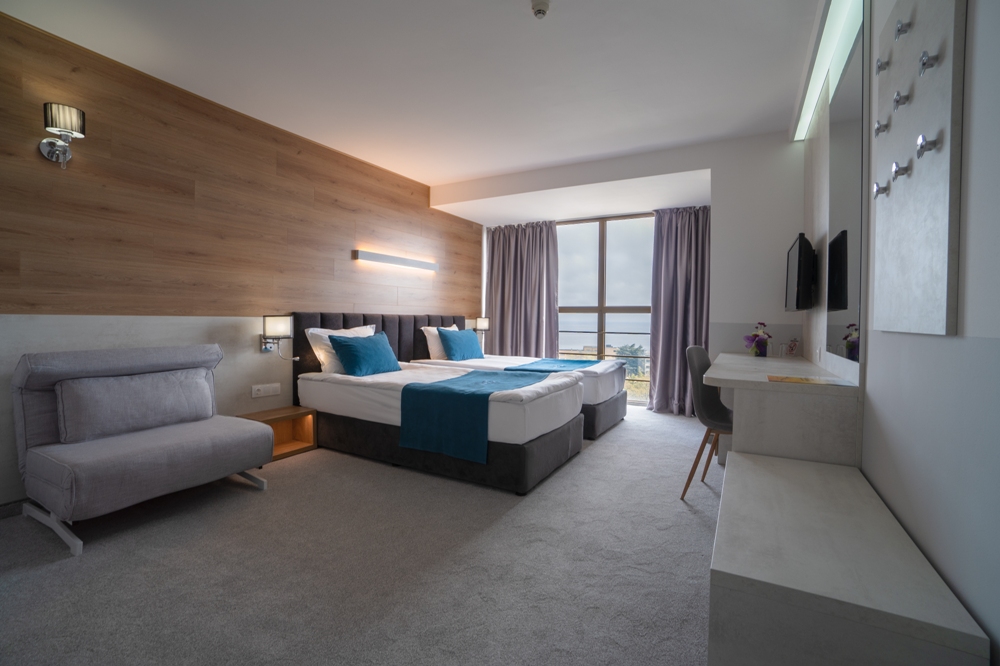 DBL SV: два односпальні ліжка або 1 двоспальне ліжко, раскл.кресло / раскл.діван, 1 ванна кімната з ванною або душем; макс. 2в. + 1р., 3в; 20 м2;