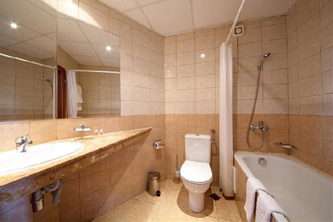 APARTMENT: 2 кімнати з міжкімнатними дверима; в спальні - 1 двоспальне ліжко, ванна з душем; в вітальні - 1 односпальне ліжко, 1 двомісний розкладний диван, 1 розкладне крісло, ванна кімната з ванною; макс.3в. + 2р., 40-50м2.