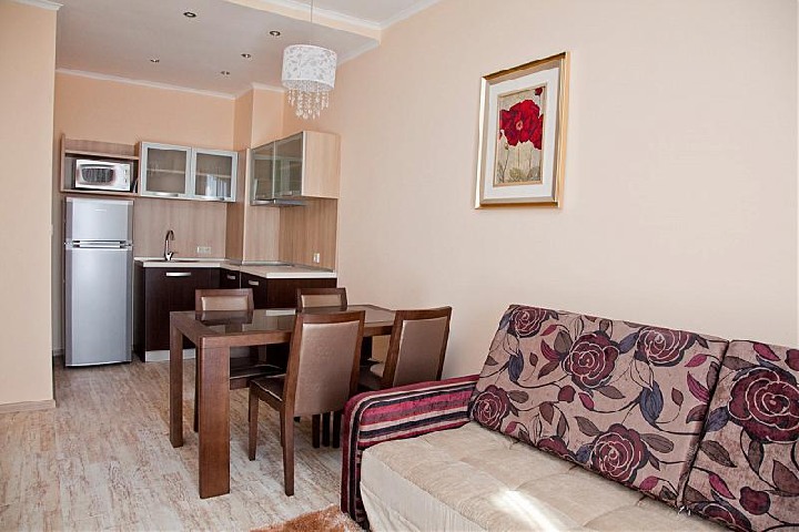 1bedroom apartment SV / PV: 2 приміщення, двері між кімнатами, розкладний диван; кухонна зона обладнана: електроплита з витяжкою, електричний чайник і кухонний посуд; 1 ванна кімната з ванною; макс.4в. + 1р. (від 0 до 2 років, можуть спати на дитячому ліжечку) 59кв.м .;