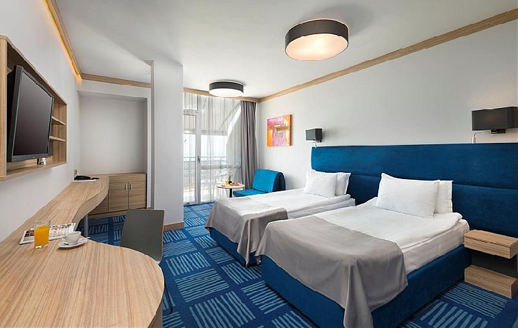 DBL SUPERIOR / на верхніх поверхах /: два односпальні ліжка або 1 двоспальне ліжко, раскл.діван; 1 ванна кімната з душем; макс.2в. + 1р., 3в., з видом на парк і на басейн; 27м2;