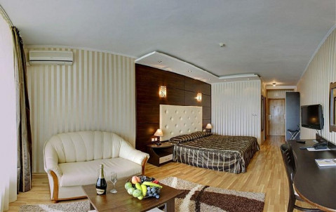 У центральній частині Золотих пісків, в 20-25м. від пляжу. 200 номерів. Останній основний ремонт зроблений в 2013р.