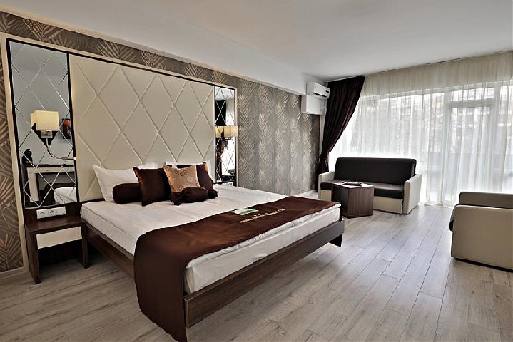 PREMIUM ROOM: 1 двоспальне ліжко, раскл.діван, раскл. крісло; 1 ванна кімната з ванною або душем; макс.2в. + 3р., 2в. + 1в. + 2р .; 40м2.