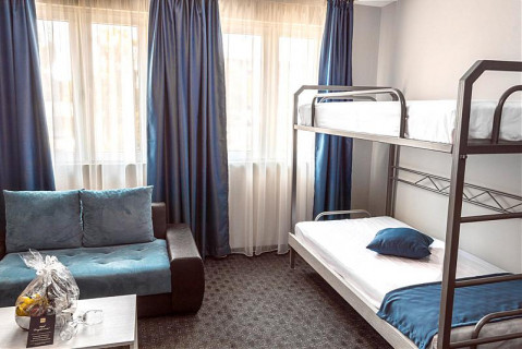 SUITE: два односпальні ліжка, раскл.діван; 1 ванна кімната з ванною і душем; макс.3в. + 1р., 4в.