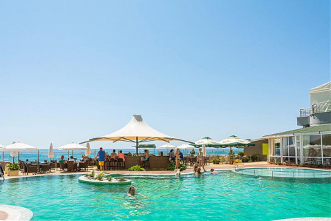 У південній частині міста Несебр, недалеко від старого міста, на березі моря. 130 номер.