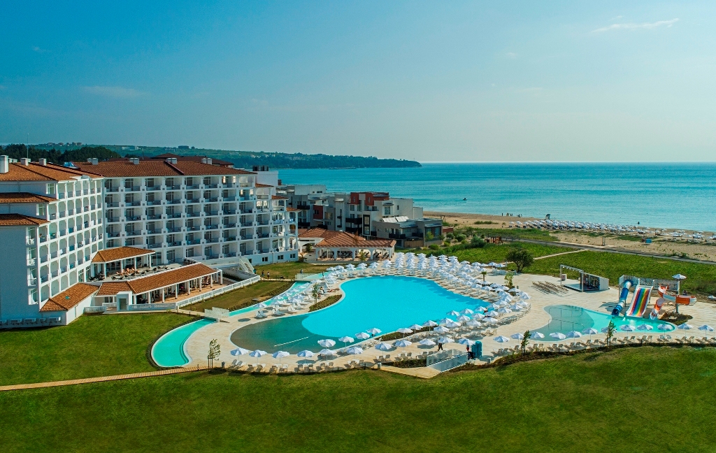 У східній частині курортного міста Обзор, в 50м. від пляжу. 250 номерa. Побудований в 2018 році.