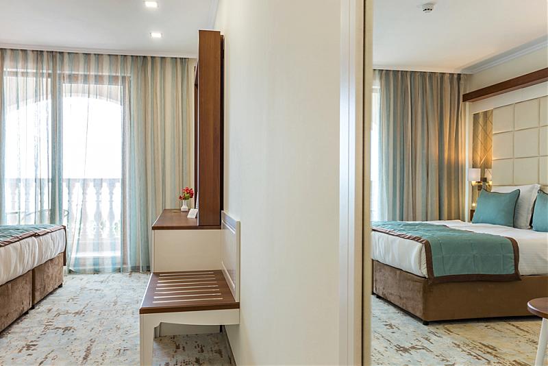 FAMILY ROOM: дві окремі приміщення з дверима між кімнатами; двоспальне ліжко, раскл.діван; 1 ванна кімната з душем; макс.2в. + 2р., 3в. + 1р., 3в .; 45м2