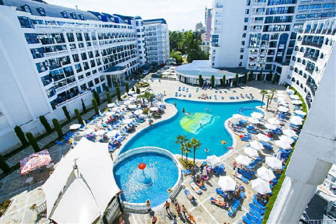 У північній частині Сонячного Берега, на березі моря. 880 номерів. Рік останнього ремонту - 2016 / частково в окремих приміщеннях /.