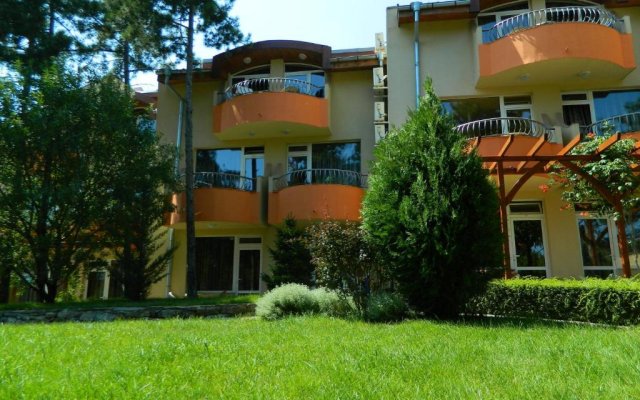 Знаходиться в північній частині курорту Сонячний берег, поруч з сосновим лісом в 2 км від центру курорту і в 200 м від пляжу.