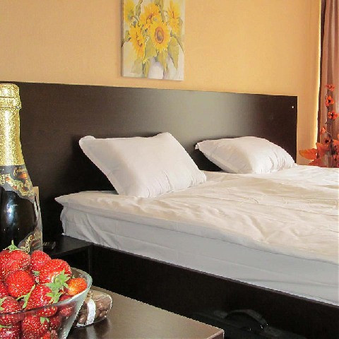 У центральній частині Сонячного берега, в 150м від пляжу. 261 номери. Останній ремонт 2015р. / Двомісні номери, сімейні номери (2 номери з дверима між номерами)