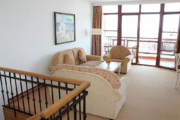 DOUPLEX SUITE: 2 приміщення з двері між кімнатами, в спальні: 1 двоспальне ліжко, у вітальні: раскл.діван; 1 ванна кімната з вихрова ванна; макс.2в. + 2р., 3в.