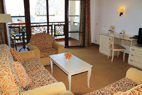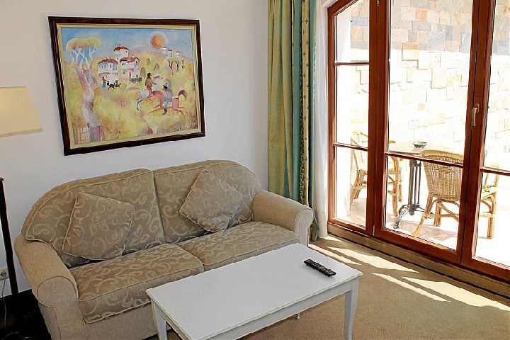 JUNIOR SUITE: 2 приміщення, в спальні: 1 двоспальне ліжко, у вітальні: раскл.діван; 1 ванна кімната з ванною; макс.2в. + 2р., 3в .;