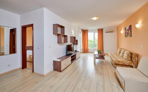 SUITE 3REG. BED & 1 SOFA BED: спальня з два односпальні ліжка; вітальня з розкладний диван; 1 ванна кімната з душем; макс.2в. + 2р., 3в. + 1р .; 45кв.м .;