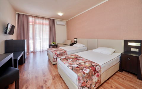FAMILY ROOM: дві кімнати кожна з двома односпальними ліжками; 1 ванна кімната з душем; макс.3в. + 1р., 4в., 45кв.м .;