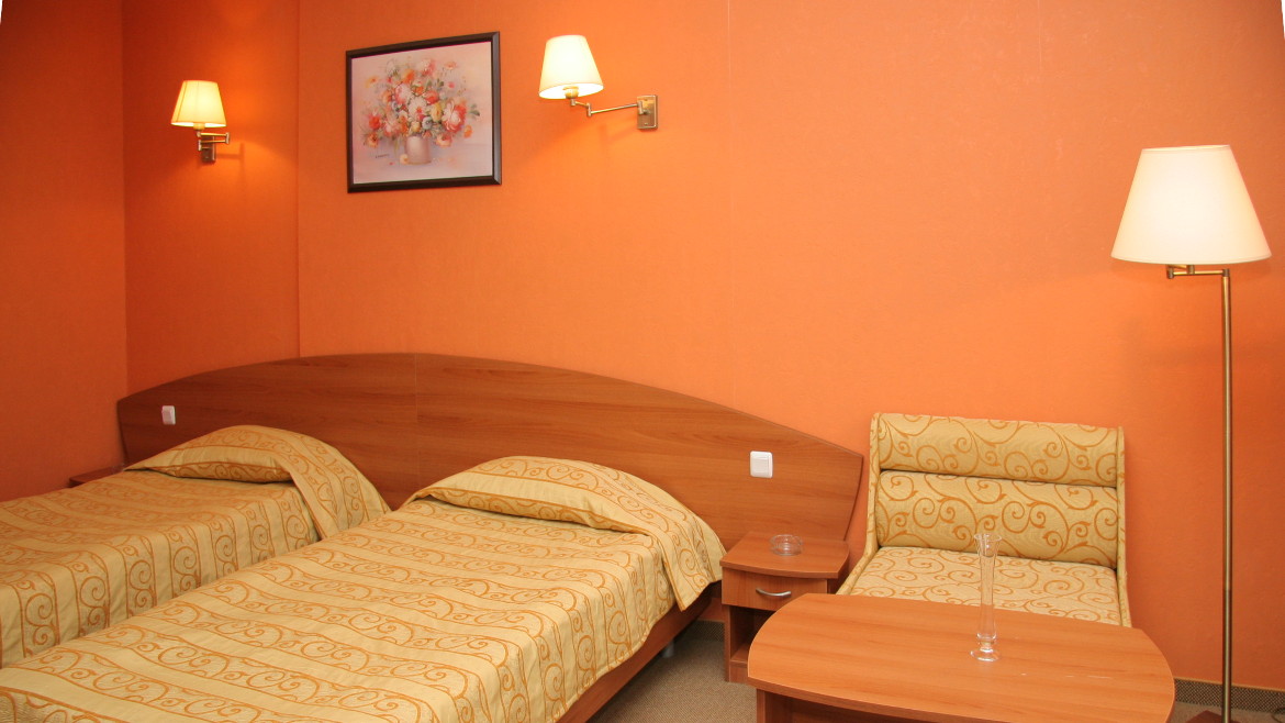 DBL: два односпальні ліжка, раскл.кресло, 1 ванна кімната з ванною / на 4 поверх / або душем; макс.2в. + 1р., 3в., 24м2 .;