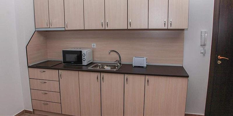 STUDIO: два односпальні ліжка, розкладний диван, кухонним куточком з обладнанням / плита, ел.чайник /; 1 ванна кімната з душем; макс. 2в. + 1р., 3в., 40м2;