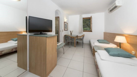 Готель розташований в мальовничому сосновому бору, в 150 м від пляжу, в 10 хвилинах ходьби від центру м Бол і відомого пляжу Златні Рат, і в 80 км від міжнародного аеропорту.