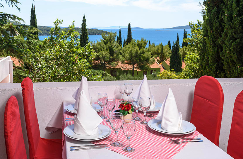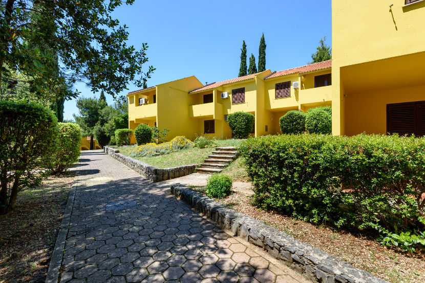 Готель розташований в красивій бухті, оточеній сосновим лісом, недалеко від рибальського села Seget Donji, в 4 км від Трогіра, в 30 км від Спліта, і в 7 км від міжнародного аеропорту. Комплекс Medena Apartments Village в однойменний туристичний селище Medena і є його невід'ємною частиною.