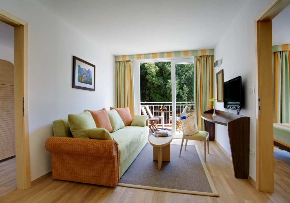 PSTSUB- FAMILY SUITE with Balcony (44-48 кв.м, сторона парку, балкон або тераса з мiсцем для відпочинку, дві спальні, вітальня з диваном, дві ванні кімнати: одна з ванною, друга з душовою кабіною, макс. 5 дор. )
