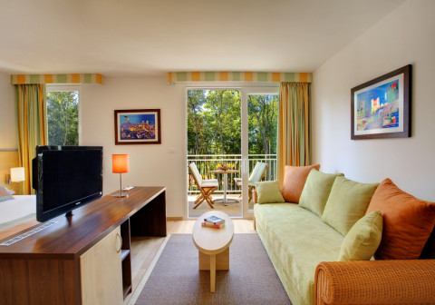 Superior Family Suite Balcony (44-52 кв.м, сторона парку, балкон або тераса з мiсцем для відпочинку, дві спальні, одна з яких з ліжком king-size, інша - дитяча з двоярусною ліжком, вітальня c диваном, дві ванні кімнати: одна з ванною, друга з душовою кабіною, макс. 5 дор.)