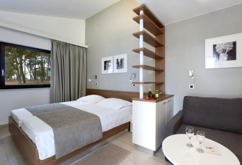 Цей готель завжди в дефіциті, що не дивно, беручи до уваги незвичайну природу і атмосферу півострова, на якому він розташований. Тут існує свій мікроклімат, при якому завжди дуже комфортно і ранньою весною, і пізно восени, не кажучи вже про літніх місяцях. Практично вся територія комплексу буквально накрита гілками вікових сосен, в тіні яких, на зелених галявинах, можна завжди знайти відокремлене місце. В готелі буде зручно будь-якої категорії відпочиваючих. Galijot - одні з найдорожчих готелів Хорватії. За словами керівництва холдингу Laguna Porec, у вартість проживання включена плата за розташування комплексу. За доп. плату можливе розміщення з тваринами до 10 кг. До недоліків комплексу можна віднести застаріле стан номерів, а також те, що при поганій погоді готель не може запропонувати гостям додаткові послуги - такі, як критий басейн, фітнес, wellness і т.д.