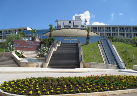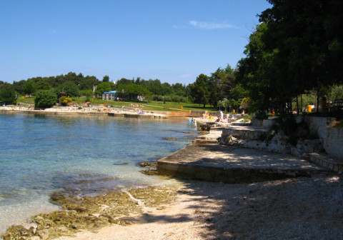 Пляжі центру Zelena Laguna, що мають «Блакитний прапор» ЮНЕСКО (скелясті плато і бетоновані платформи). На пляжі є душ, бари і ресторани; парасольки і лежаки - за доп. плату; лежаки біля басейну - безкоштовно. Довжина сходів, якими необхідно підніматися до готелю від пляжу, становить близько 100 м.